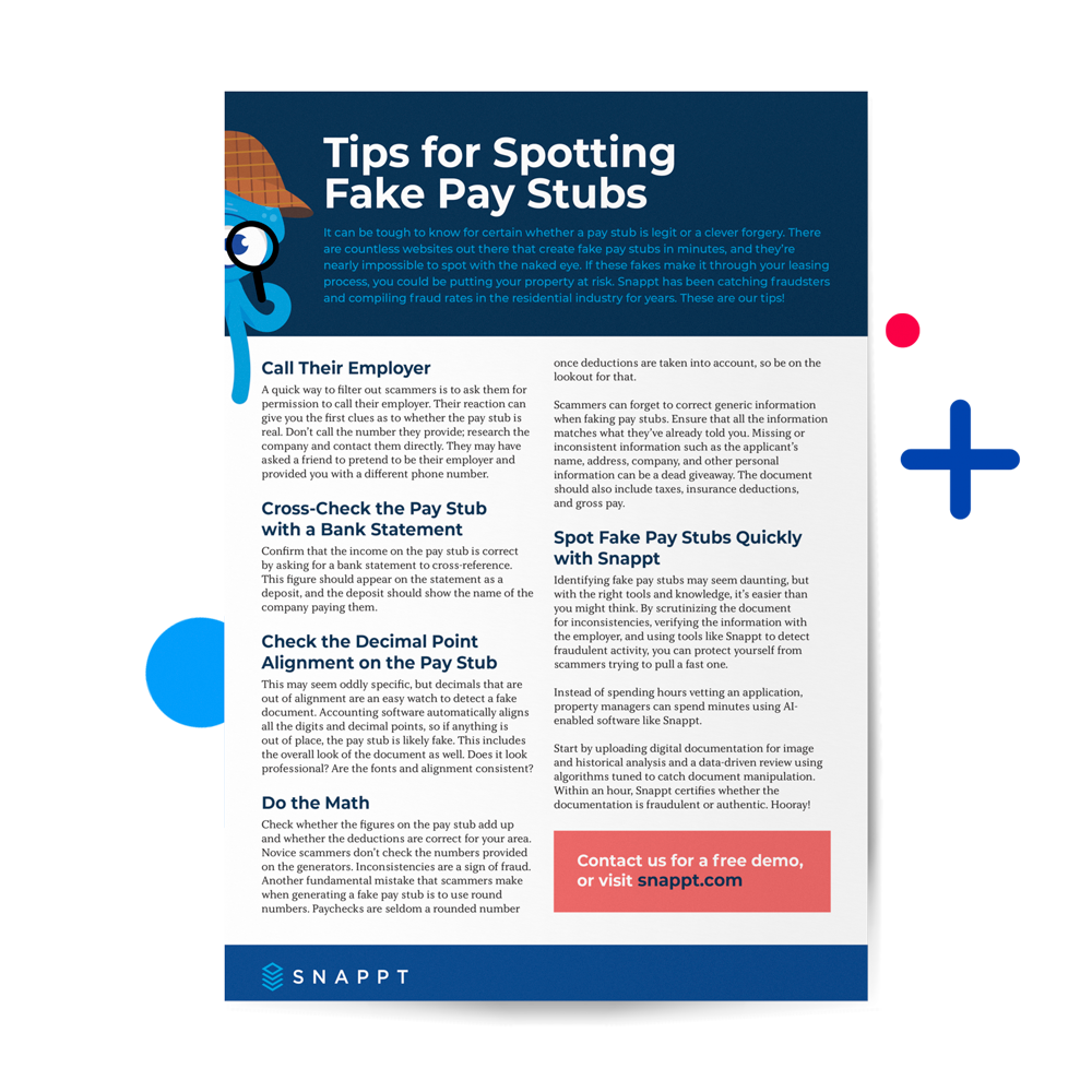 Fear not! Snappt has been at the forefront of catching fraudsters and tracking fraud rates in the residential industry for years. Ready for some tips from the experts?